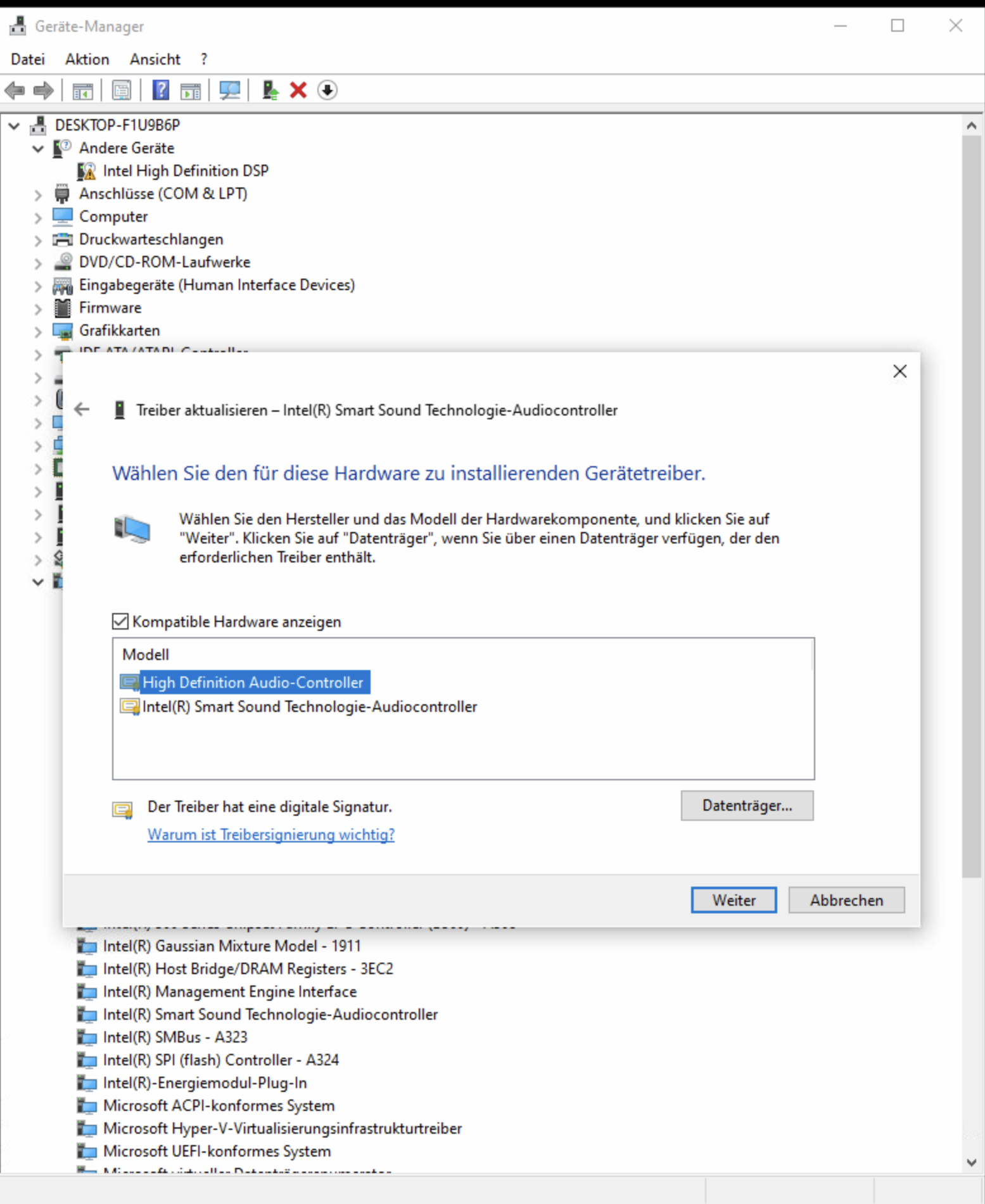 - Intel(R) Smart Sound Technologie-Audiocontroller
